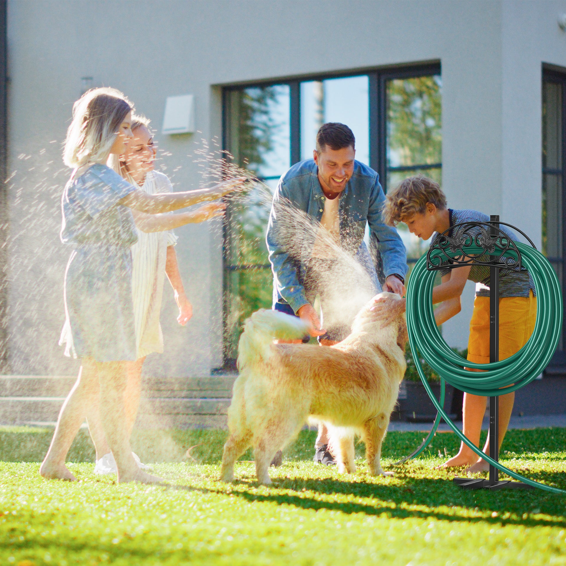 4 Spikes, Freestanding Hose Hanger Outdoor Hold Stand Heavy Duty 6 Hooks Metal Garden Hose Storage Hose Reel Rack for Outside